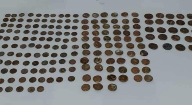 Evde yapılan aramada 198 sikke ele geçirildi. K.Y. ve F.Ö. gözaltına alınırken, olayla ilgili soruşturma sürüyor. (DHA)