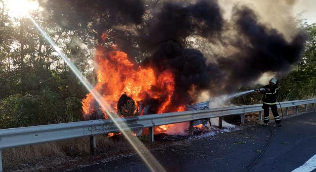 Tekirdağ'ın Ergene ilçesi TEM Otoyolu'nda kontrolden çıkarak bariyere çarpan otomobil alev aldı. Kazada sürücü Yusuf Çelik (39), hayatını kaybetti.