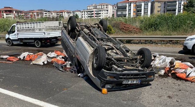 Tekirdağ'ın Süleymanpaşa ilçesinde freni boşalan gübre yüklü kamyonet takla atarak karşı şeride devrildi, araçtaki 3 kişi yaralandı.