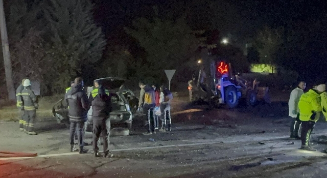 Tekirdağ’da iş makinesine çarpan otomobil alev aldı; 5 ölü