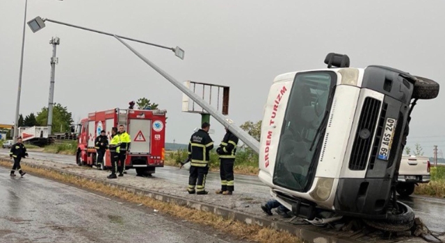 Tekirdağ’da lastiği patlayan servis minibüsü devrildi: 7 yaralı