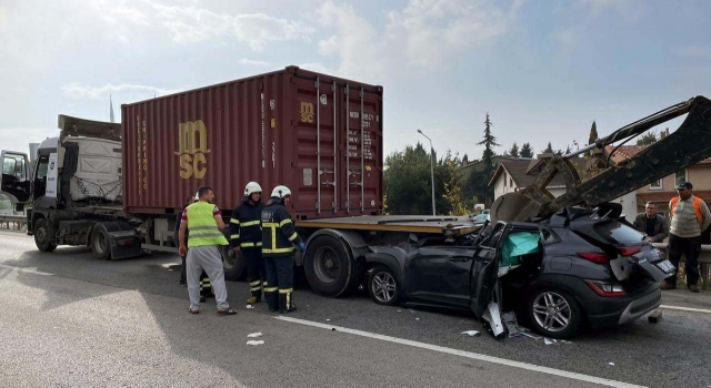 TIR'ın altına giren otomobilin sürücüsü U.E., sıkıştı. İhbar üzerine kaza yerine polis, itfaiye ve sağlık ekipleri sevk edildi. Ekiplerin çalışmasıyla sıkıştığı yerden ağır yaralı çıkarılan U.E., ambulansla hastaneye kaldırıldı. TIR'ın altına giren otomobil ise kaza yerine çağırılan ekipler tarafından iş makinesiyle çıkarıldı.