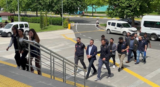 Şüpheliler, S.K., N.A., N.O., S.S. ve B.K., emniyetteki işlemlerinin ardından sevk edildikleri adliyede çıkarıldıkları mahkemede tutuklandı. (DHA)
