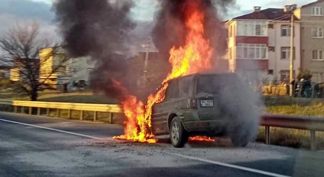 Tekirdağ’da seyir halindeki cip yandı