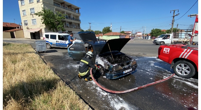 Tekirdağ'ın Çorlu ilçesinde, seyir halindeyken motor kısmından tutuşan otomobil yandı. Alevler, itfaiye ekibince söndürülürken, araç kullanılamaz hale geldi.