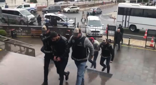 Şüpheliler, emniyetteki işlemlerinin ardından sevk edildikleri adliyede çıkarıldıkları mahkemede tutuklandı. (DHA)