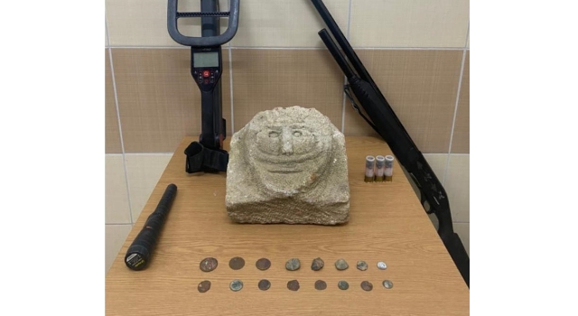 Jandarma ekipleri, şüphelinin evinde yaptıkları aramada, tarihi eser niteliğinde olduğu değerlendirilen16 sikke, bir taş heykel, bir detektör ve bir ruhsatsız av tüfeği ele geçirdi.