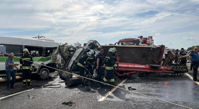 Tekirdağ'da vinçli kamyon yolcu minibüsüne çarptı: 3'ü ağır 12 yaralı