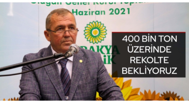 Ahmet Akgün, elde edilen gelir artığının ortaklara dağıtılacağını belirterek, ayçiçeğinde bu yıl 400 bin ton rekolte beklendiğini dile getirip, şöyle konuştu: "Elde ettiğimiz kar rakamımızın ortak içi ve ortak dışı işlemler açısından değerlendirdiğimizde sezon içerisinde ürün fiyatlarının alım fiyatımızın ton başına 300 TL’lere varan düşüş göstermesine, yüksek miktarda mubayaa edilen ürün nedeniyle geçmiş yıllara göre daha yüksek tutarda kredi kullanılmasından kaynaklı yüksek finansman maliyetlerine rağmen ortak içi işlemlerde de zarar etmemeyi başararak bu yıl da kooperatiflerimiz eliyle ortaklarımıza risturn dağıtımı gerçekleştirebileceğimizi de buradan memnuniyetle duyurmak isterim. Bu iş yılında elde ettiğimiz karın çok önemli bir kısmı dışarıdan pozisyon aldığımız ham maddeden kaynaklanması nedeniyle buradan oluşan ortak dışı karın yine önümüzdeki yıllarda ortaklarımıza sermayeleri oranında yüksek kar payı olarak dönüşü sağlanmış olacaktır. Üretici ortaklarımızın içinde bulunduğumuz iş yılında sürdürdükleri üretim faaliyetleri neticesinde 400 bin tonun üzerinde rekolteye ulaşılması beklenmekte olup bu üretim büyüklüğü çerçevesinde ortaklarımızın birliğimize rekolte beyannamesi ile taahhüt edeceği ayçiçeğinin tamamına alım garantisi verilmek suretiyle birliğimiz çok önemli bir kamusal görevi kararlılıkla ifa etmeye devam edecektir."