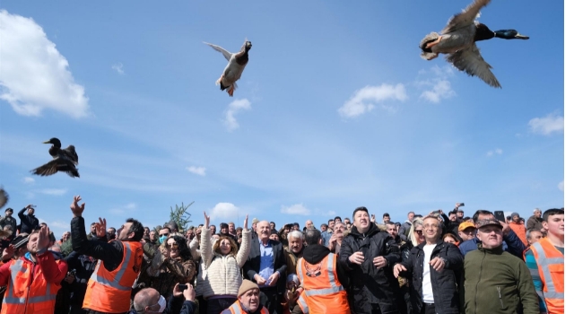 Tekirdağ'ın Hayrabolu ilçesi göletinde düzenlenen, 'Yaban doğada yaban ile buluşuyor' etkinliğine İYİ Parti Tekirdağ Milletvekili Enes Kaplan, TRAKAF Başkanı Çetin Karakoç, Doğa Koruma Milli Parklar İl Şube Müdürü Gökay İnal, Trakya'daki avcılar ile vatandaşlar katıldı. Törende avcıların yetiştirdiği 1000 ördek törenle gölete salındı. TRAKAF Başkanı Çetin Karakoç, 5 yıldır doğaya ördek salımı yaptıklarını belirterek, amaçlarının doğayı korumak ve zenginleştirmek olduğunu söyledi. Avcıların her zaman doğaya ve yaban hayvanlarına karşı gereken hassasiyeti gösterdiğini belirten Karakoç, "Her yıl gelenekler olarak düzenlenen 'Yaban doğada yabanla buluşuyor' projesinin bu yılki etkinliğinde başta bölge avcılarımız büyük emekleriyle yaban ördeği üretip doğaya katkı sunuyor. Bugün çevre, doğa temelinde sürdürülebilir yaban hayatı için omuz omuza yürüdüğümüz çevre gönüllüleri ve doğa sever sivil toplum kuruluş temsilcilerine desteğini esirgemeyen Trakya bölgesindeki aramızda olan tüm belediye başkanlarına ve siyasi parti temsilcilerine teşekkür ediyorum" dedi.