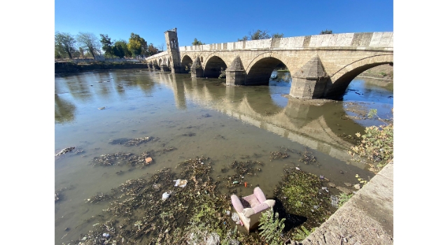 Edirne'de hem hayvanların hem de tarım arazilerinin su ihtiyacının karşılandığı Tunca Nehri'nde su seviyesi, 6 metreküp/saniyeye düştü. Nehir kuruma noktasına gelirken, köprünün olduğu bölge çöplerle kaplandı.