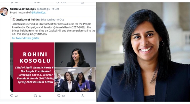 ABD'de yapılan seçimlerde başkanlığı kazanan Joe Biden'ın Yardımcısı Kamala Harris, İç Siyaset Danışmanlığı'na, Sri Lanka asıllı Rohini Kösoğlu'nu getirdi. ABD yönetimine giren Rohini Kösoğlu, Kırklareli'nin Vize ilçesinde dünyaya gelen ve yıllar önce ABD'ye giden yazılım mühendisi Özkan Sedat Kösoğlu'nun eşi. 2011 yılında evlenen ve 3 çocukları bulunan Özkan Sedat Kösoğlu'nun eşinin ABD yönetimine girmesi, Vize'de sevinçle karşılandı.
