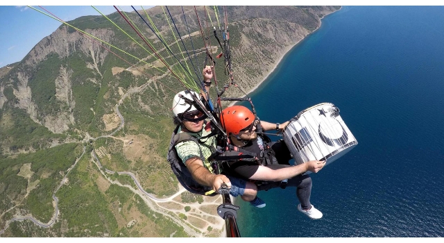 Yamaç paraşütü ile uçarken havada davul çaldı