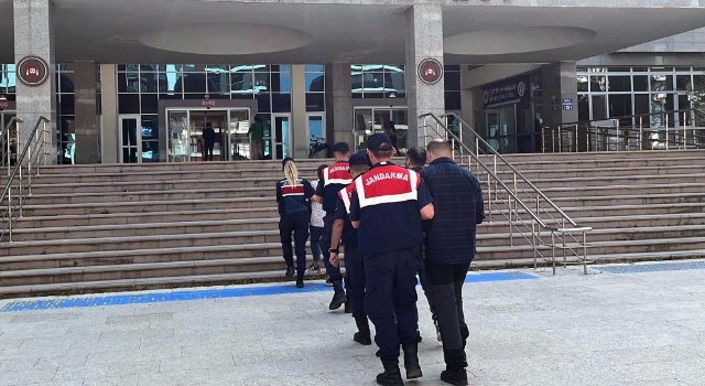 Jandarmadaki işlemlerinin ardından adliyeye sevk edilen 9 şüpheliden 8'i, çıkarıldığı Sulh Ceza Hakimliği'nde tutuklandı, diğeri adli kontrol şartıyla serbest bırakıldı. (DHA)