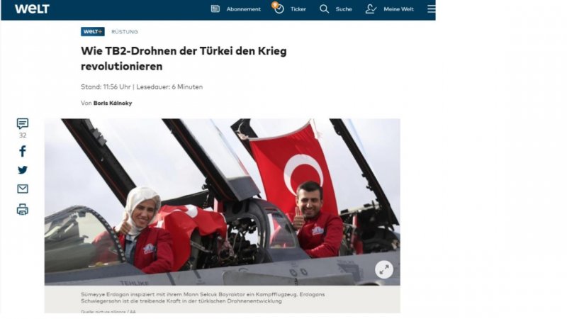 Almanya'nın etkili gazetelerinden Die Welt, Bayraktar TB2 SİHA’ları konu alan kapsamlı bir makale yayınladı. Gazetenin yazarlarından Boris Kalnoky imzalı makalede Türkiye'nin Bayraktar TB2 SİHA'larıyla devrim gerçekleştirdiği değerlendirmesi yapılarak, bu nedenle diğer ülkelerin ilgisini uyandırdığı vurgulandı. Türk SİHA’larının ABD’nin MQ-9 Reapar SİHA’sına benzetildiği makalede, Bayraktar TB2’nin savaş alanında çok daha etkili olduğu belirtildi.
