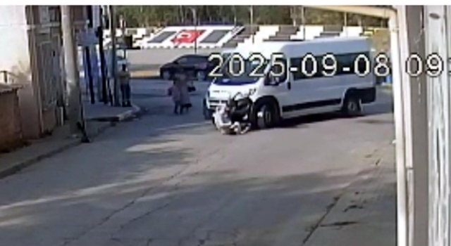 Okul yolunda servis minibüsünün çarptığı anne- oğul yaralandı; kaza kamerada