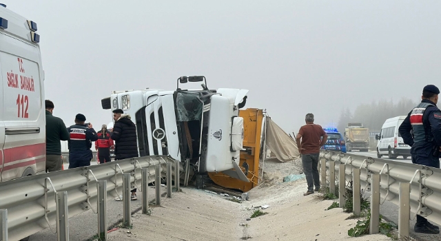 Devrilen kamyonda sıkışan sürücü yaralandı